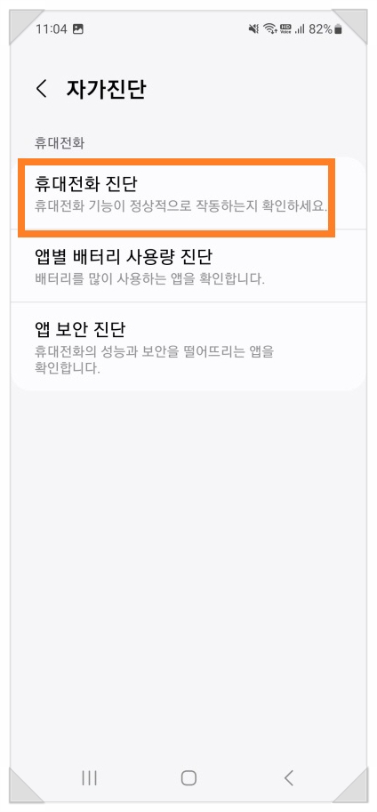 '자가 진단' 화면에서 '휴대전화 진단'을 선택합니다.